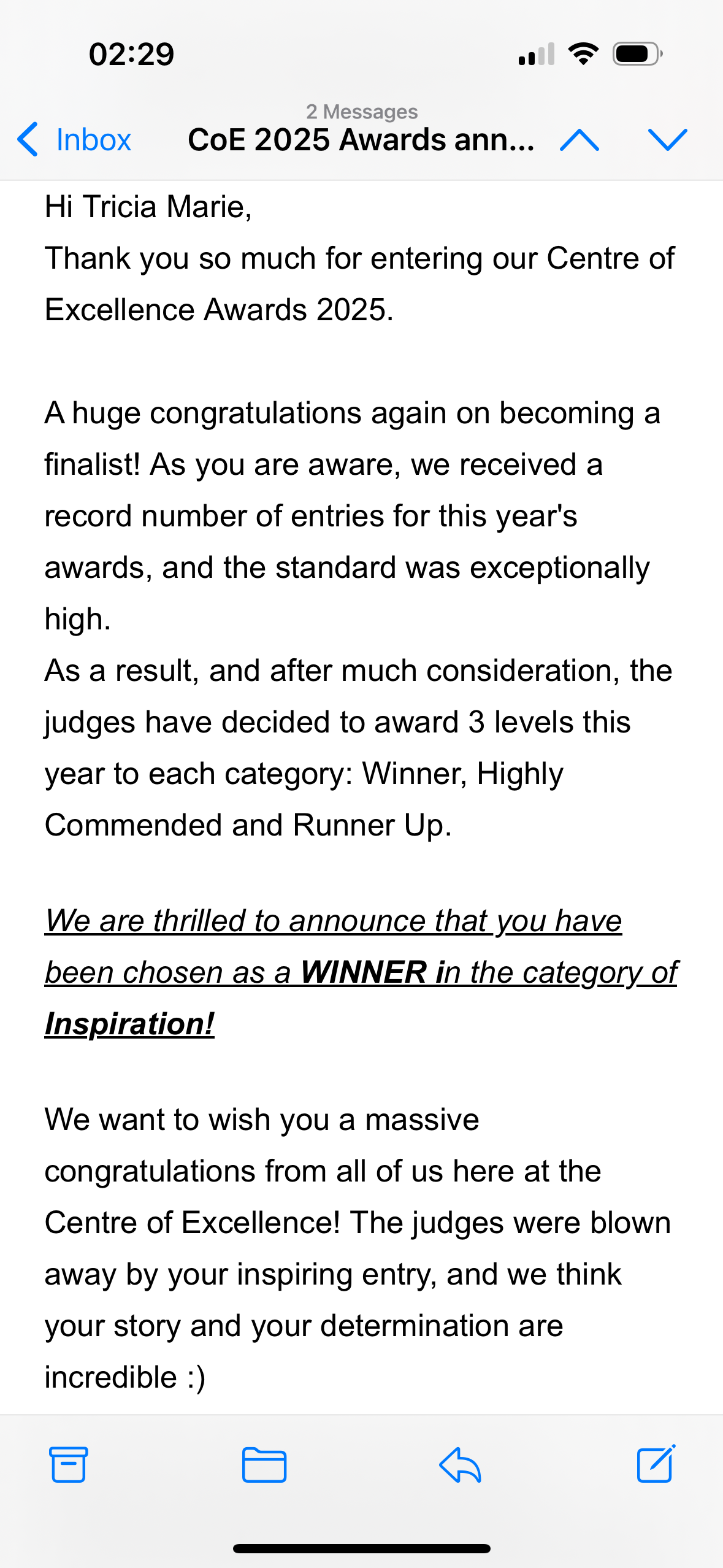 I won the Inspiration Award on Centre of Excellence 2025! I will post more about it and even my participating video soon!